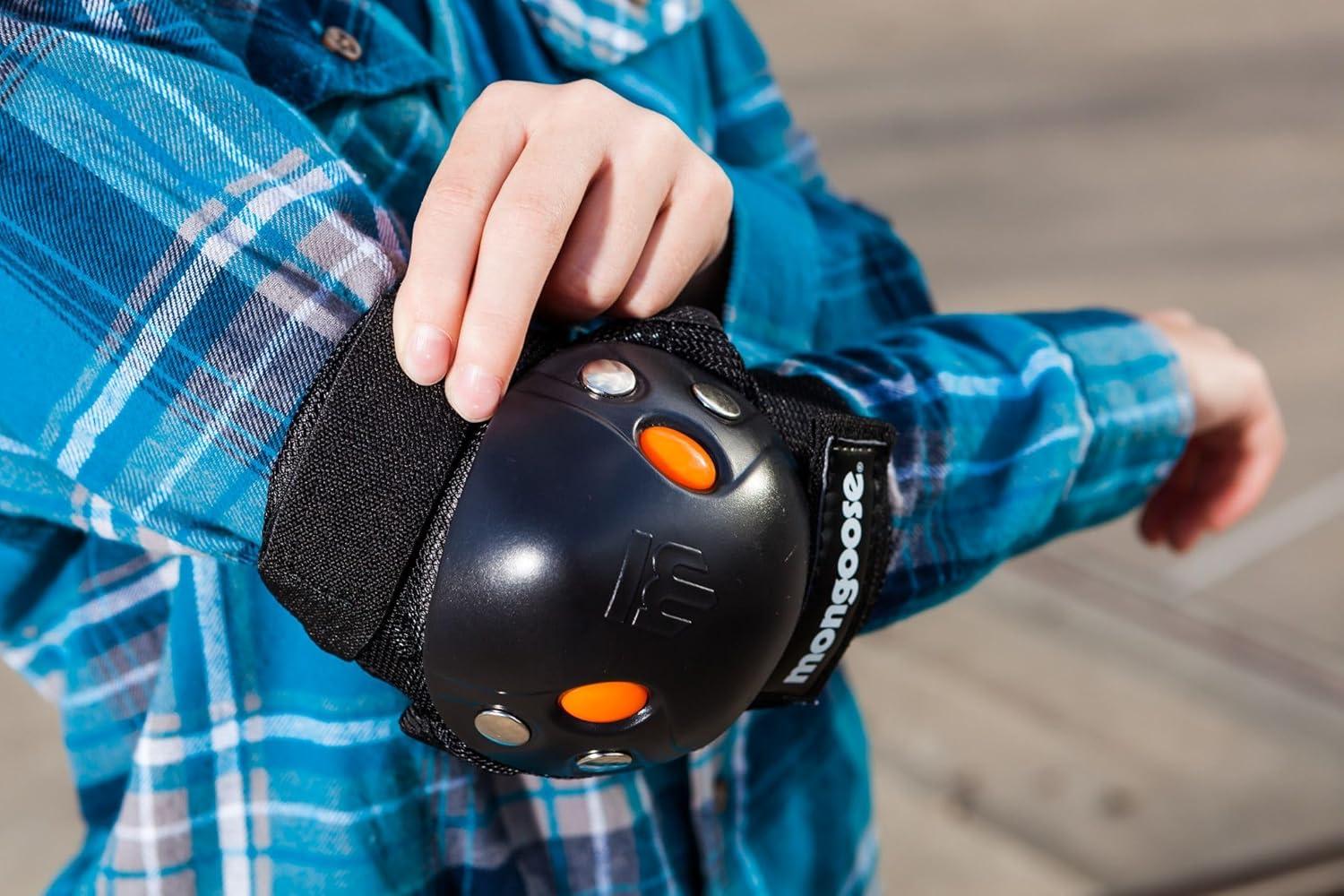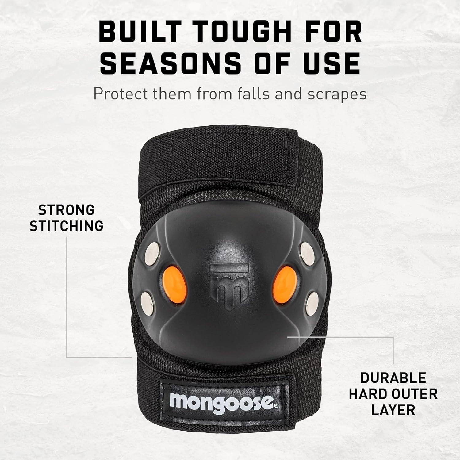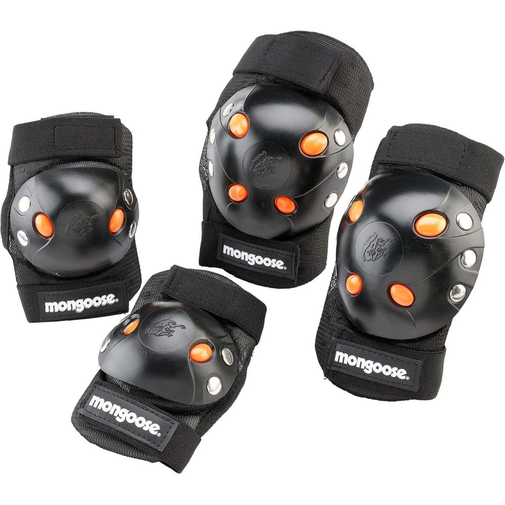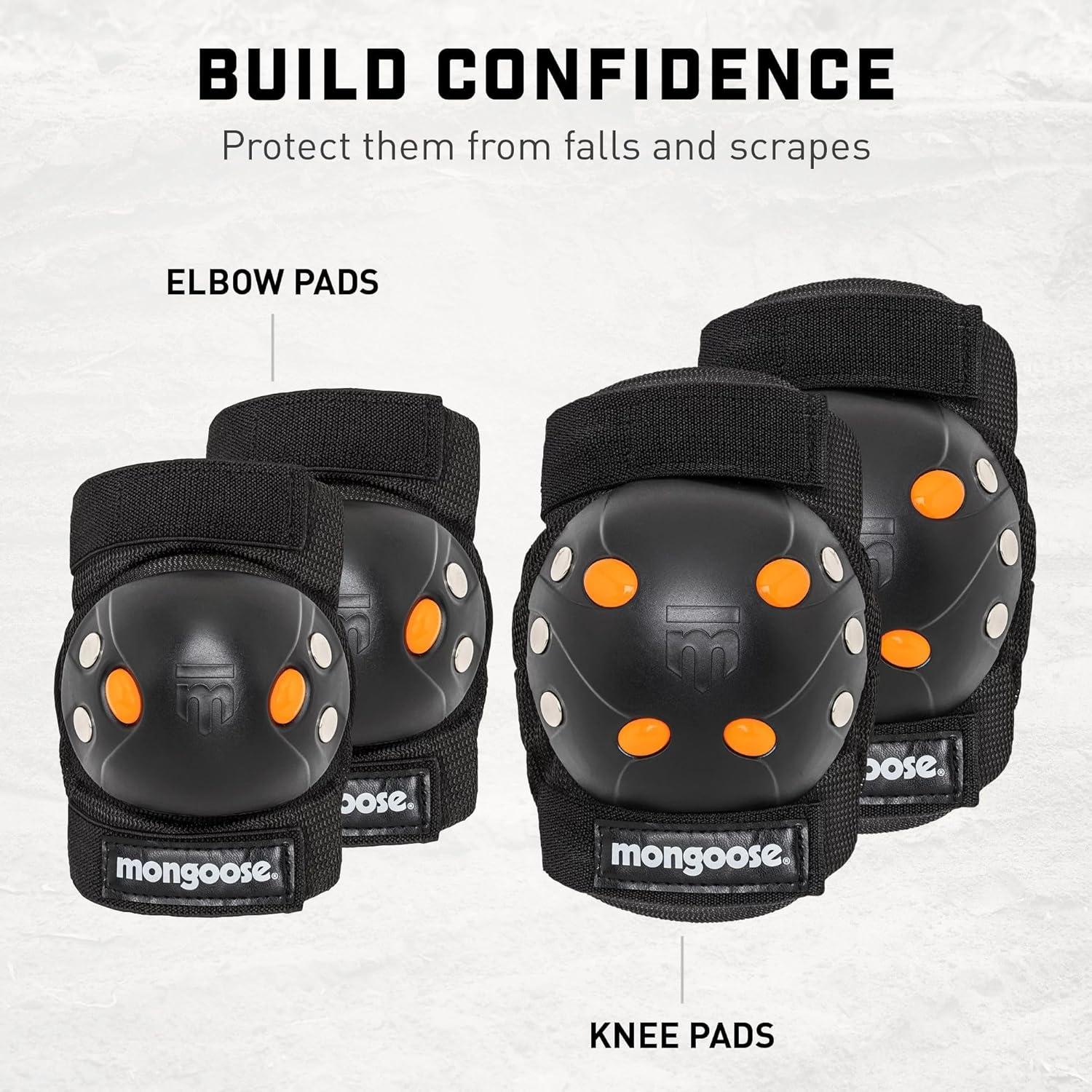 Mongoose Kids BMX Pad Set, Ages 8-14, Knee and Elbow Pads with Gel Inserts, Adjustable Straps, Multi-Sport Protection for Biking, Skating, Scooting and More, Elbow and Knee Pads for Kids(Black/Orange)