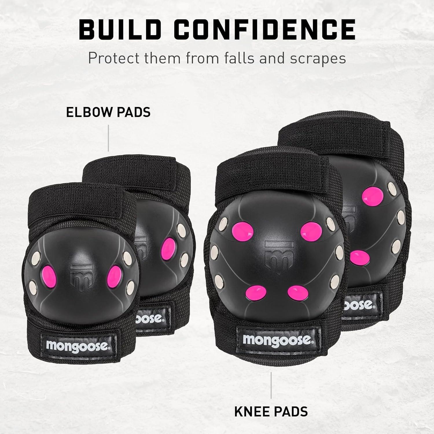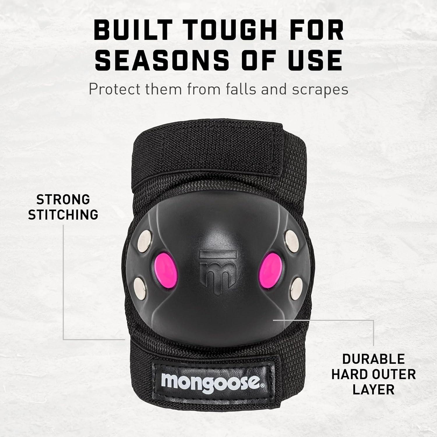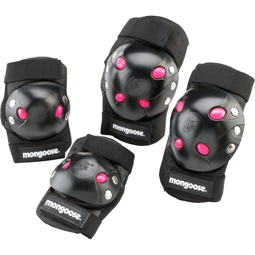 Help your child ride with confidence and protection with the Mongoose Kids BMX Pad Set. Designed for kids ages 8-14, this durable bike pads set includes form-fitting knee and elbow pads that provide multi-sport protection for biking, skating, scootering and more. Built-in gel inserts offer extra comfort and shock absorption, while the sturdy outer shell helps shield against bumps, bruises and scrapes. Adjustable Velcro straps ensure a secure, custom fit that stays put during every adventure, and mesh lining keeps things comfortable. With a sleek black design and subtle orange and silver accents, your young rider can look cool while staying safe. Whether they’re riding ramps, skating the park or cruising the neighborhood, the Mongoose BMX Pad Set is ready for every ride. At Mongoose, we know our roots – as pioneers in BMX and action sports for over 50 years, we're dedicated to delivering an epic ride every time. Get ready to push the limits.