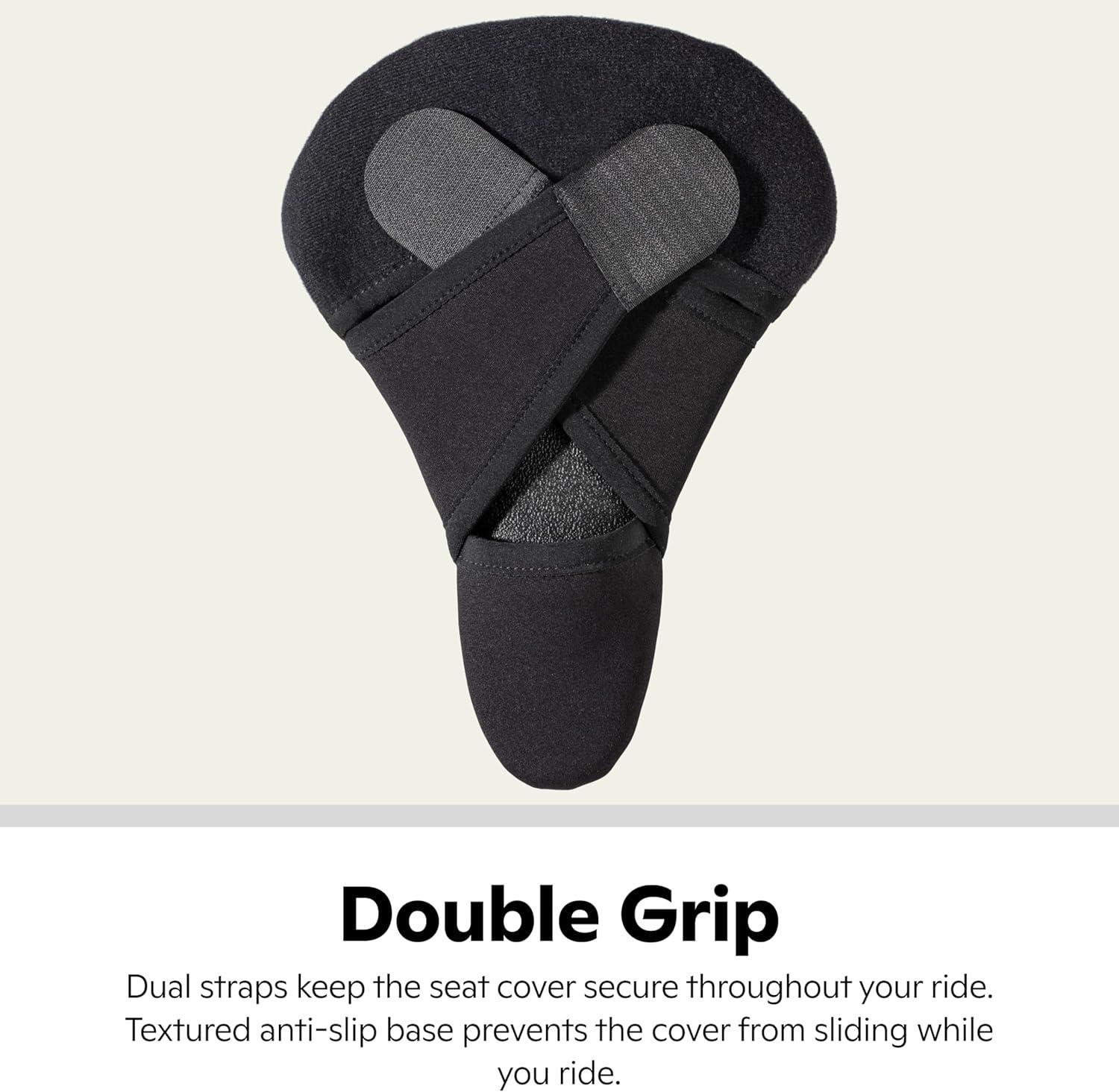 SECURE ATTACHMENT: Designed to resist sliding around as you ride, this Schwinn bike seat cover features dual straps and a grippy undercoating that help provide a secure attachment to your bicycle saddle.